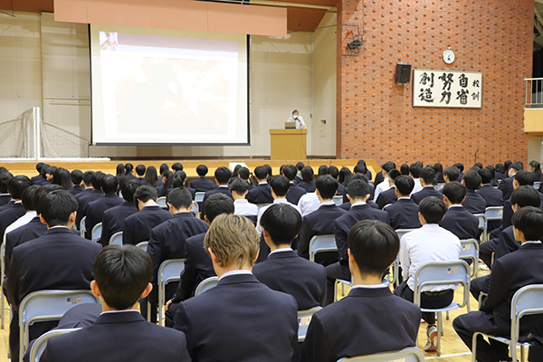 近年大きな社会問題となっている「薬物」の恐怖について理解を深め、薬物に関連する事故や事件に巻き込まれないようにすることを目的に、1年生対象の「薬物乱用防止教室」を開催しました。旭川市立大学保健福祉学部保健看護学科準教授の 山田 直行 氏を講師にお招きし、薬物の危険性や心身への影響、依存のきっかけ等について学び、自己抑止力の重要性についてご講話いただきました。巧妙な手口による誘惑や若い世代をターゲットにしたSNS等での甘い謳い文句には絶対に心を寄せてはいけません。きっぱりと拒絶する強い意志を持ち続けましょう。