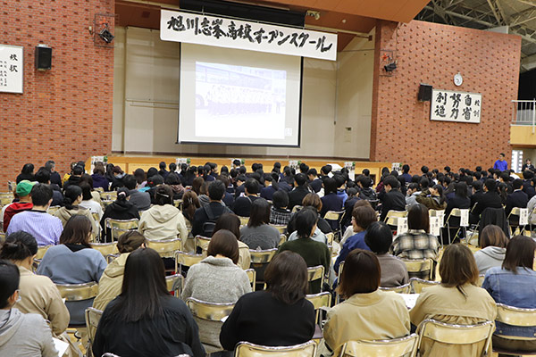 時折小雨模様の悪天候ではありましたが、多くの生徒の皆さん並びに保護者の方々に足を運んでいただきました。2年前に「学び」を重視するコースを新設するとともに、道内でも最先端を誇るICT環境の整備を進めてまいりました。多様なニーズに応えることのできる旭川志峯高校で有意義な3年間を過ごしてもらえることを願っています。