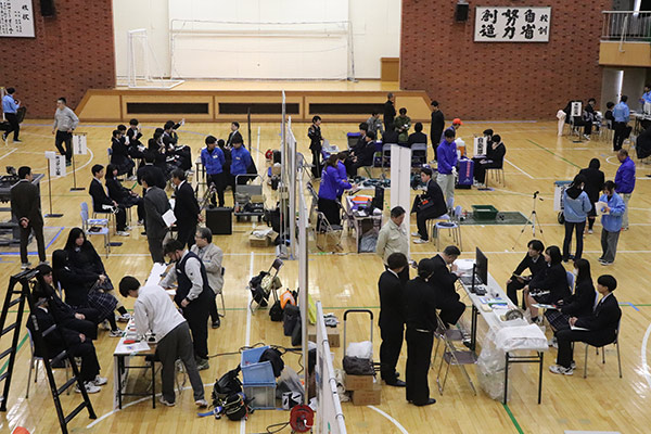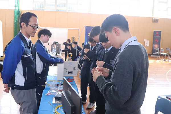 一、二年生を対象に、本校体育館を活用して「体験型企業説明会」を開催しました。早期から職業観を育成し就業意識を啓発することで、今後の主体的な進路設計につなげることがねらいです。