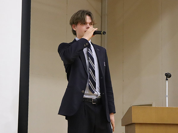 「日本での生活は、人としての成長につながる充実した一年でした。多くの出会いの中で、互いに敬意を払う日本の文化にとても心がひかれました。」 母国スウェーデンとの文化の違いを真摯に受け止め、何事にも積極的に取り組む中で、己と向き合い、己に問いかけ、己を理解し、人生を真剣に考えるエイドリアンさんの姿に、誰もが尊敬の念を抱きました。